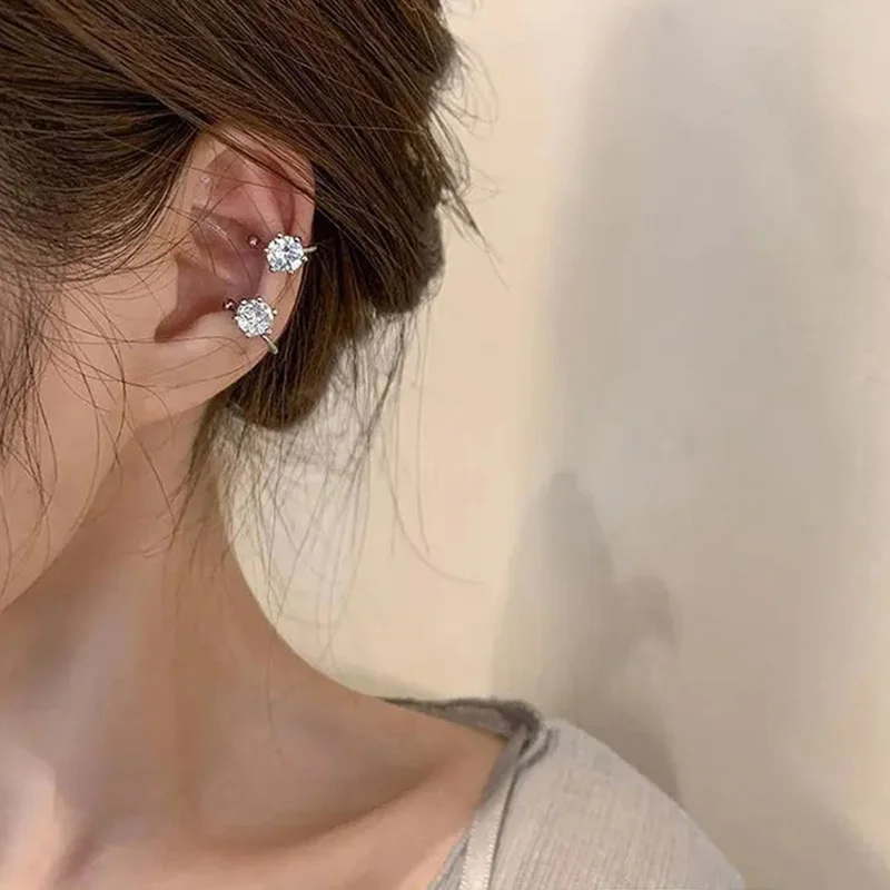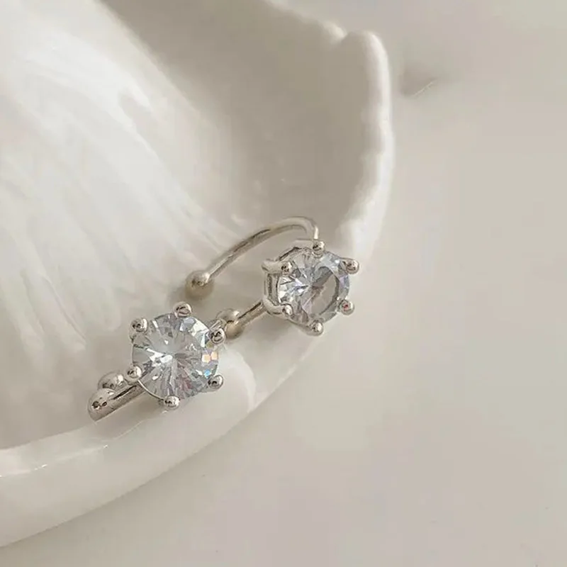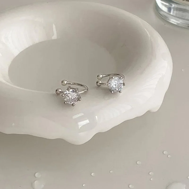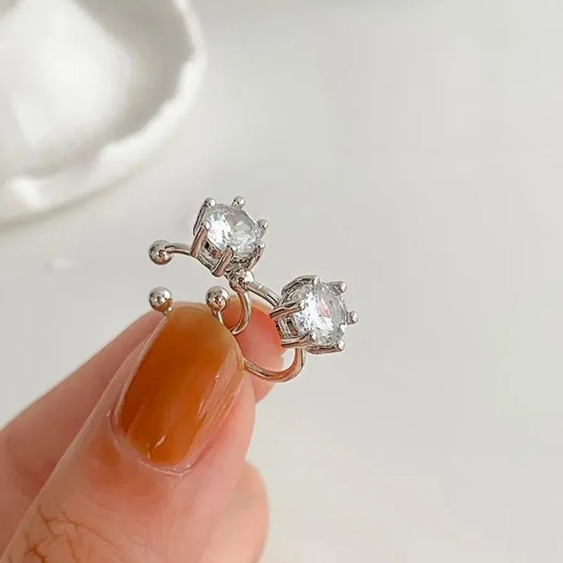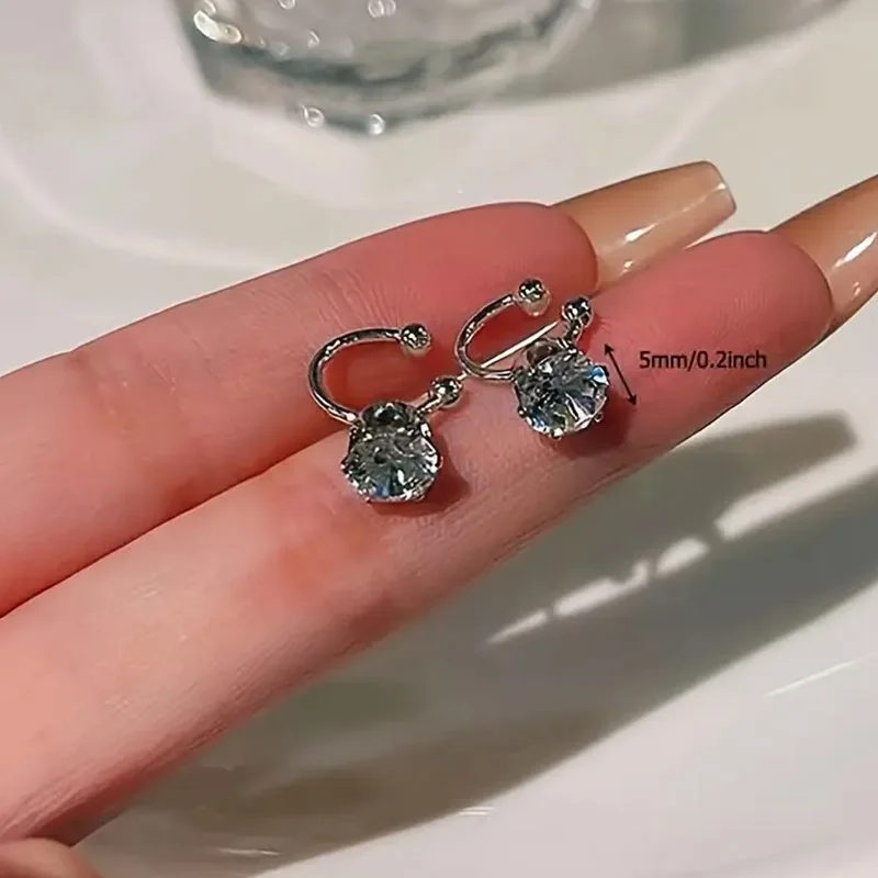 Elegant Shiny Synthetic Zirconia Hoop Earrings Adjustable Non Piercing Ear Clips for Women Daily Wear Party Banquet Jewelry Gift