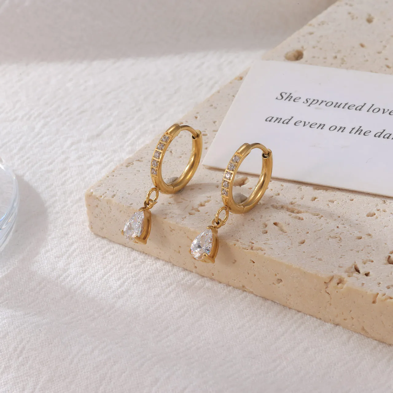 High End Water Drop Earrings Trendy Precious Zircon Dangle Stainless Steel Earrings Versatile Light Luxury Jewelry for Women