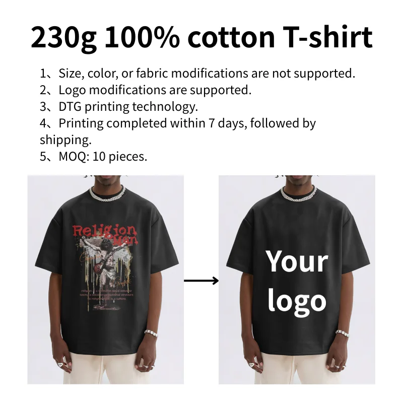 Personalized Graphic Unisex Baggy T-shirt 230 Gsm 100% Cotton Streetwear Dtg Print t Shirt Oversize Blank Crew Neck Tshirt Men